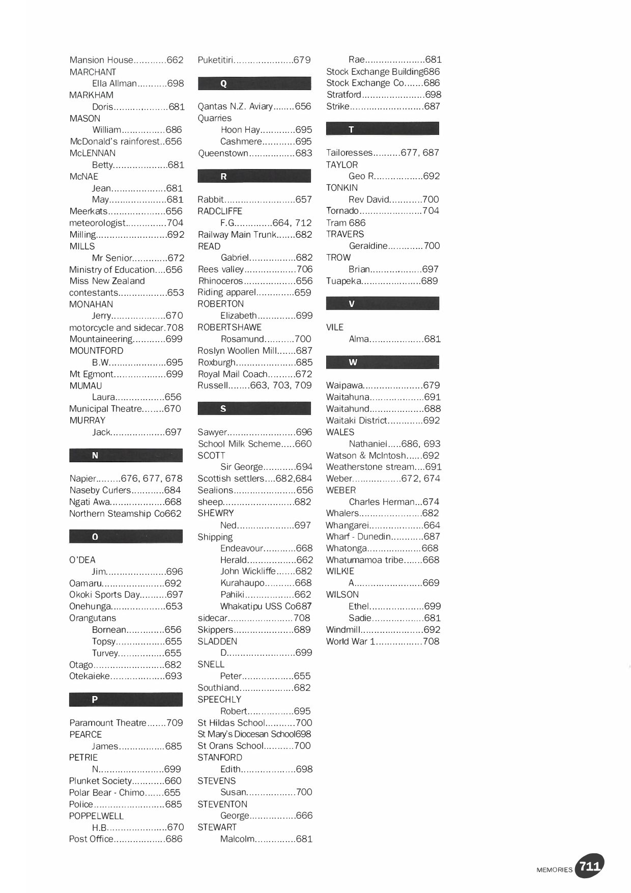 Russell. ....... 663, 703, 709 Waipawa ...................... 679