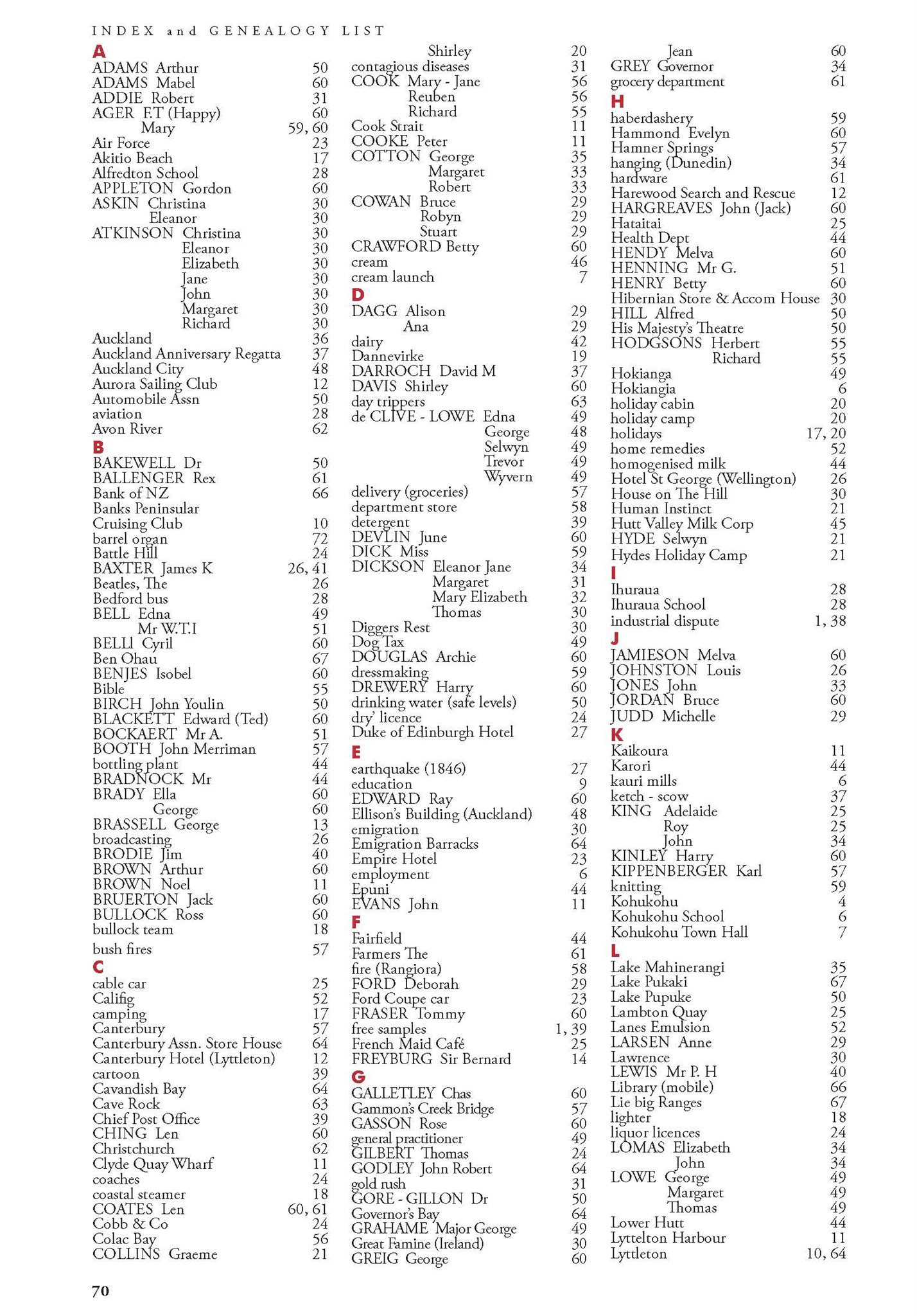 New Zealand Memories Issue 112 - Index