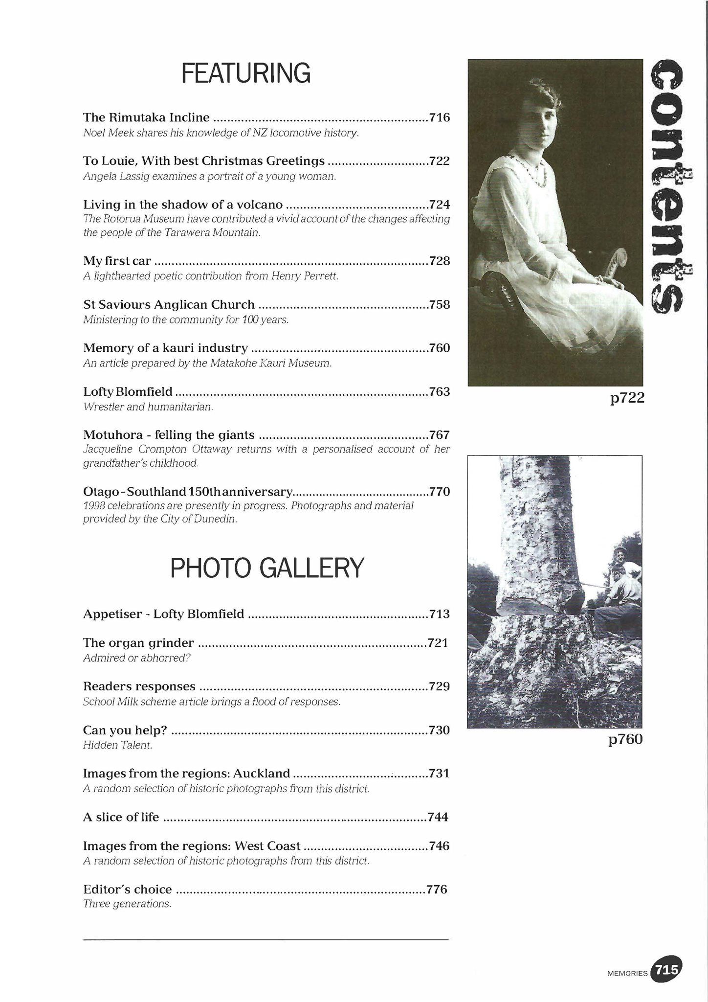 New Zealand Memories Issue 12 - Contents