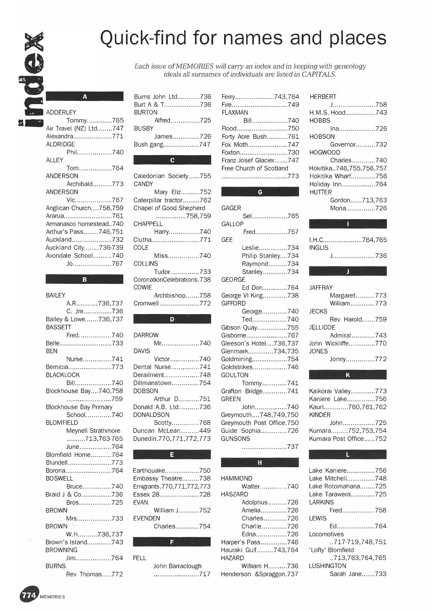 New Zealand Memories Issue 12 - Index