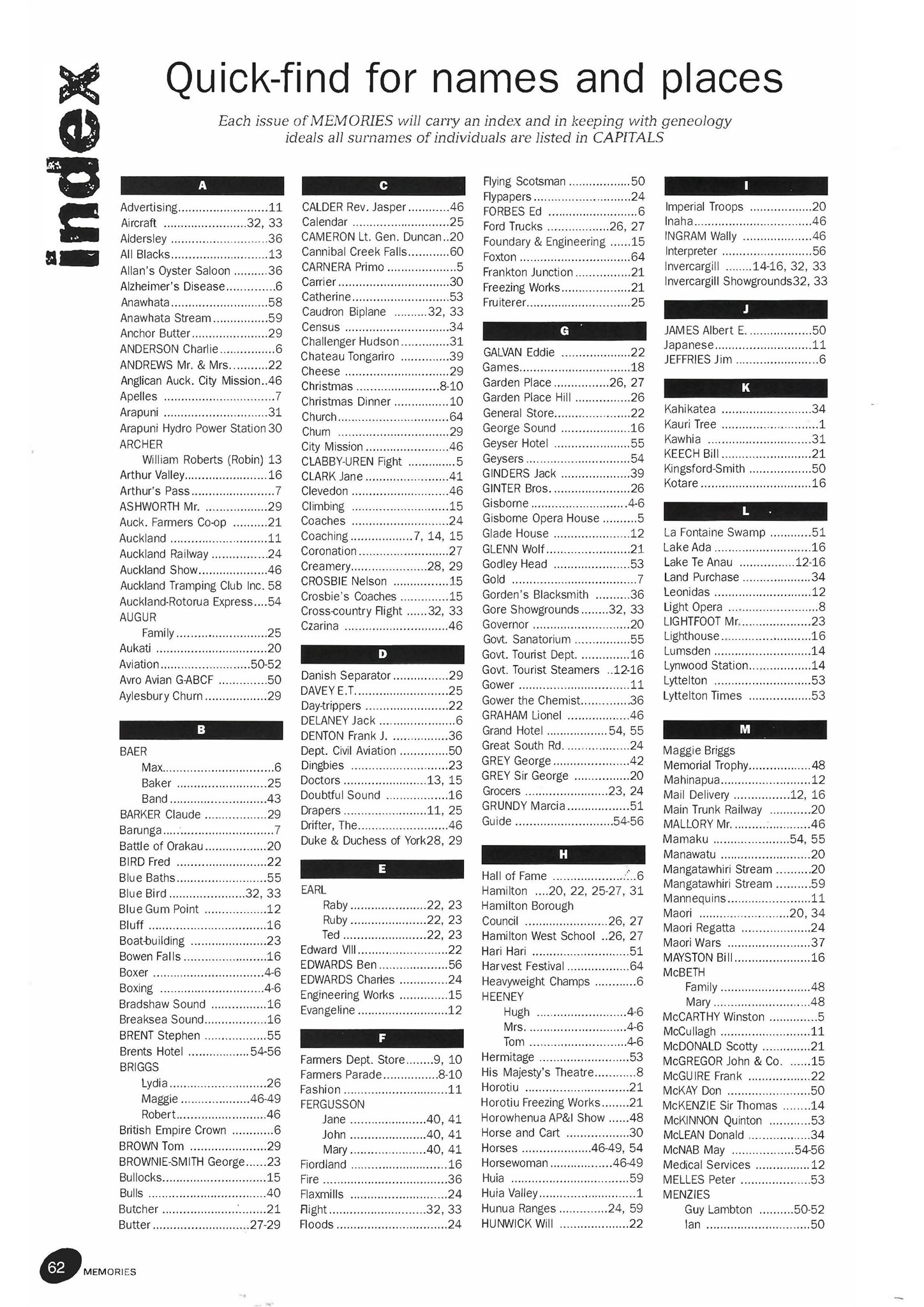 New Zealand Memories Issue 15 - Index