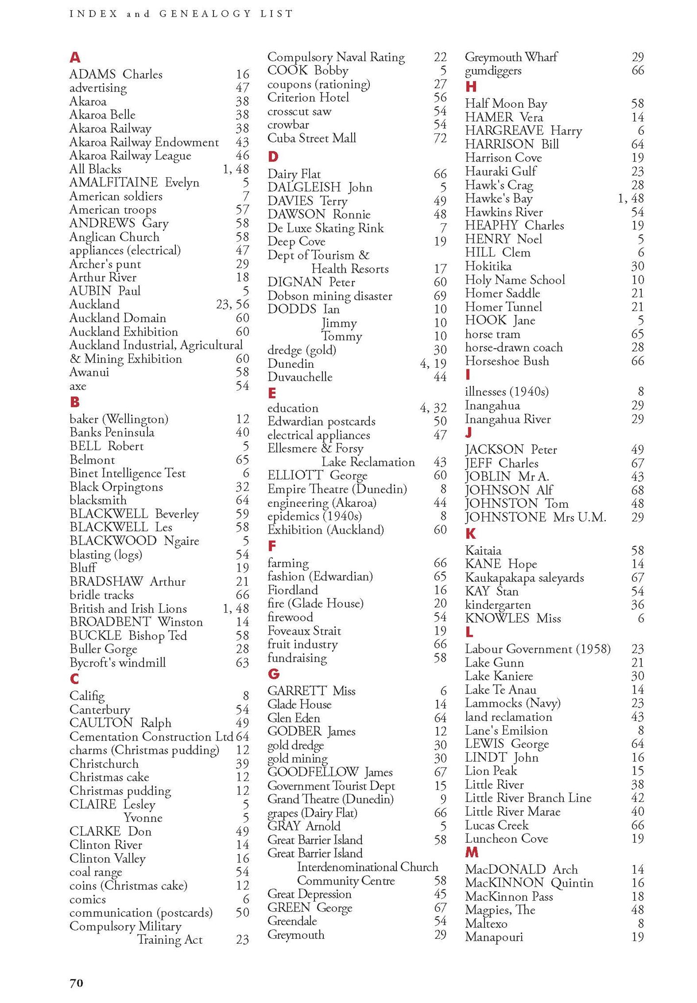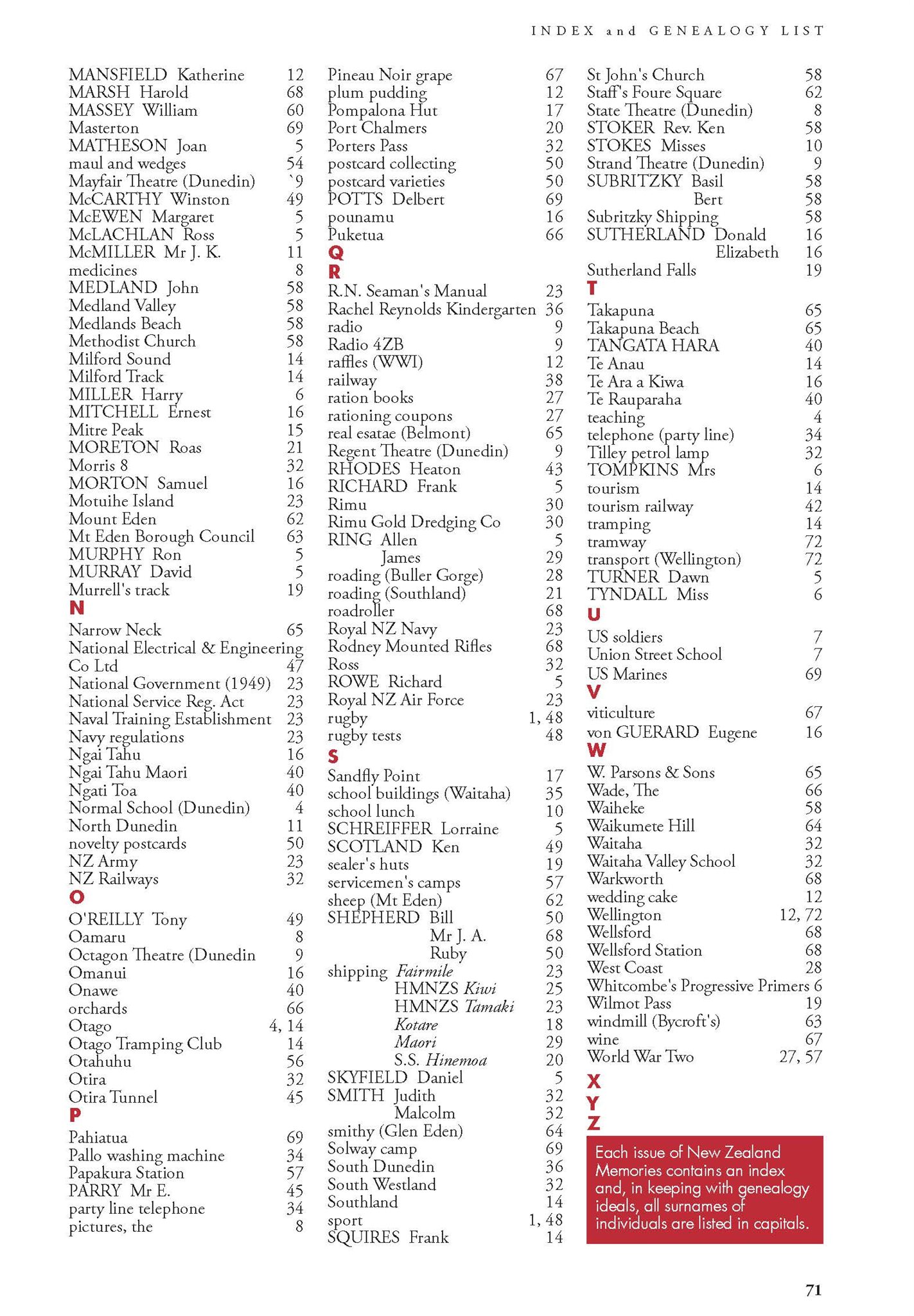 New Zealand Memories Issue 153 - Index