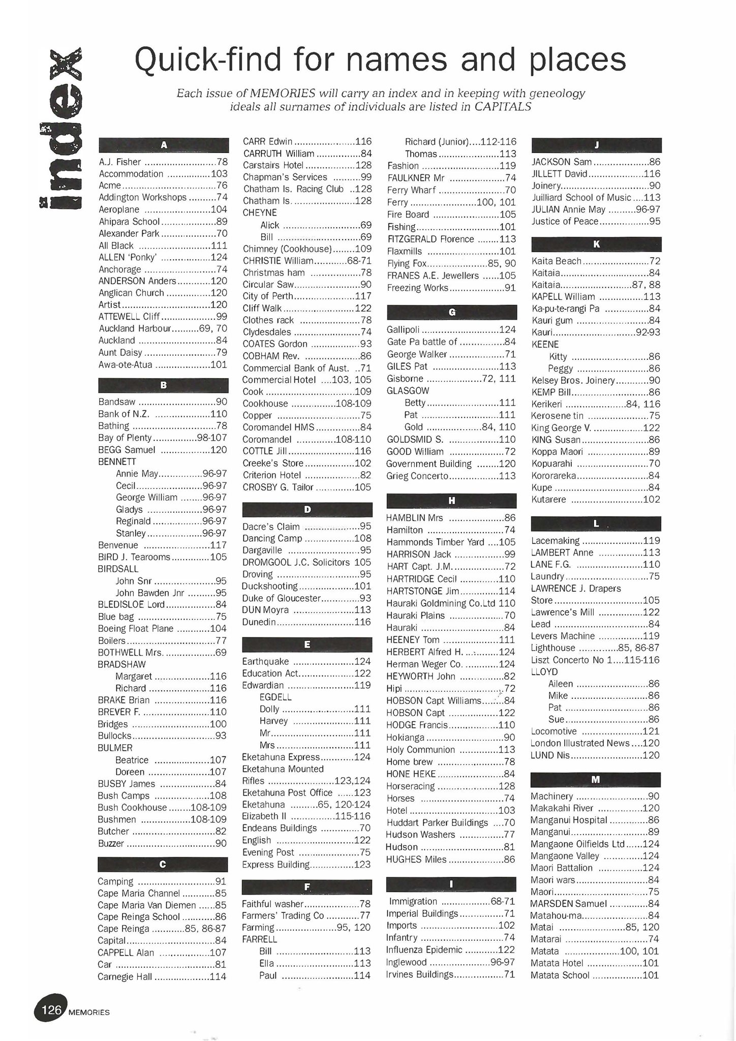 New Zealand Memories Issue 16 - Index