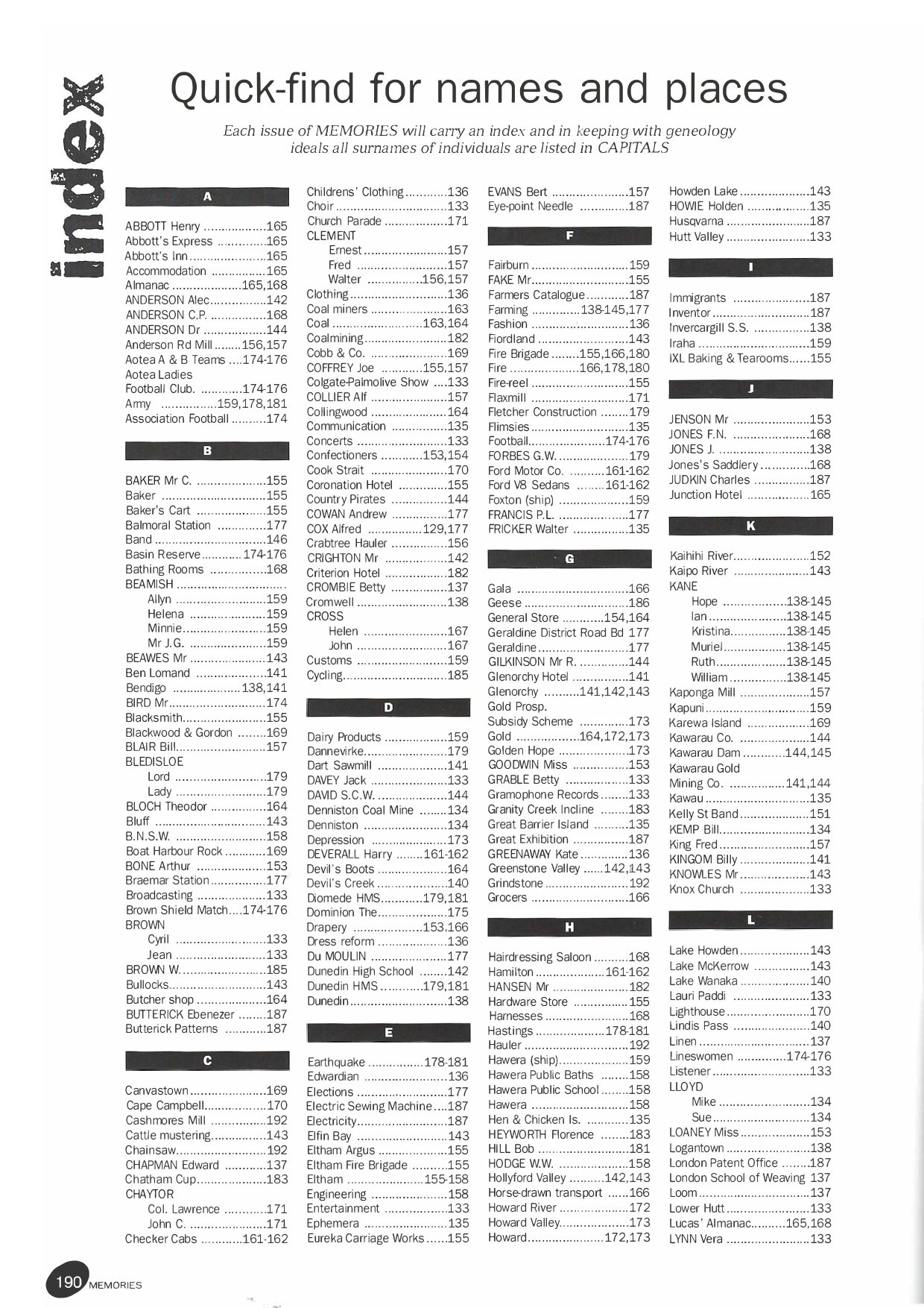 Childrens· Clothing ............136 EVANS Bert ......................157 Howden Lake ....................143