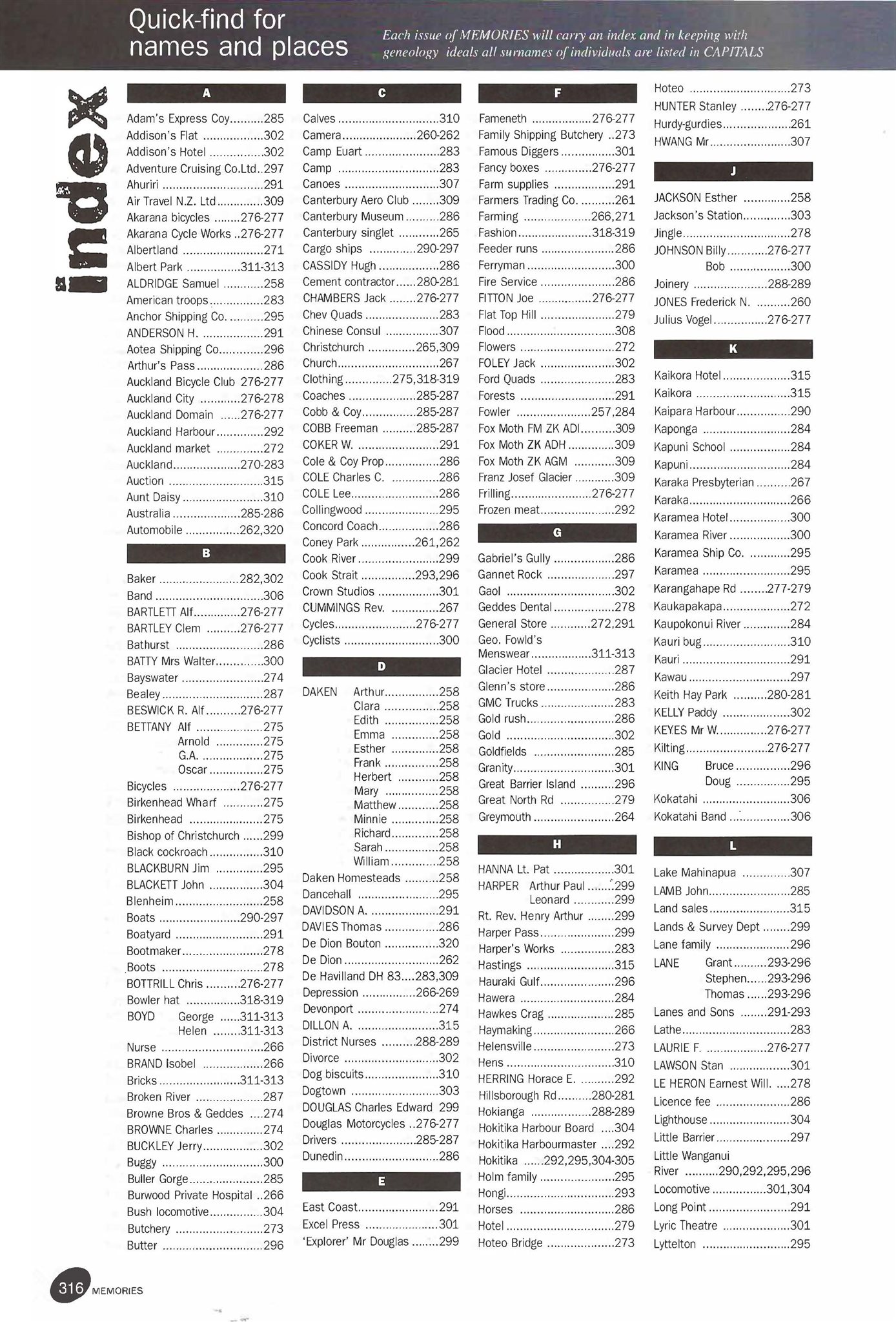 New Zealand Memories Issue 19 - Index