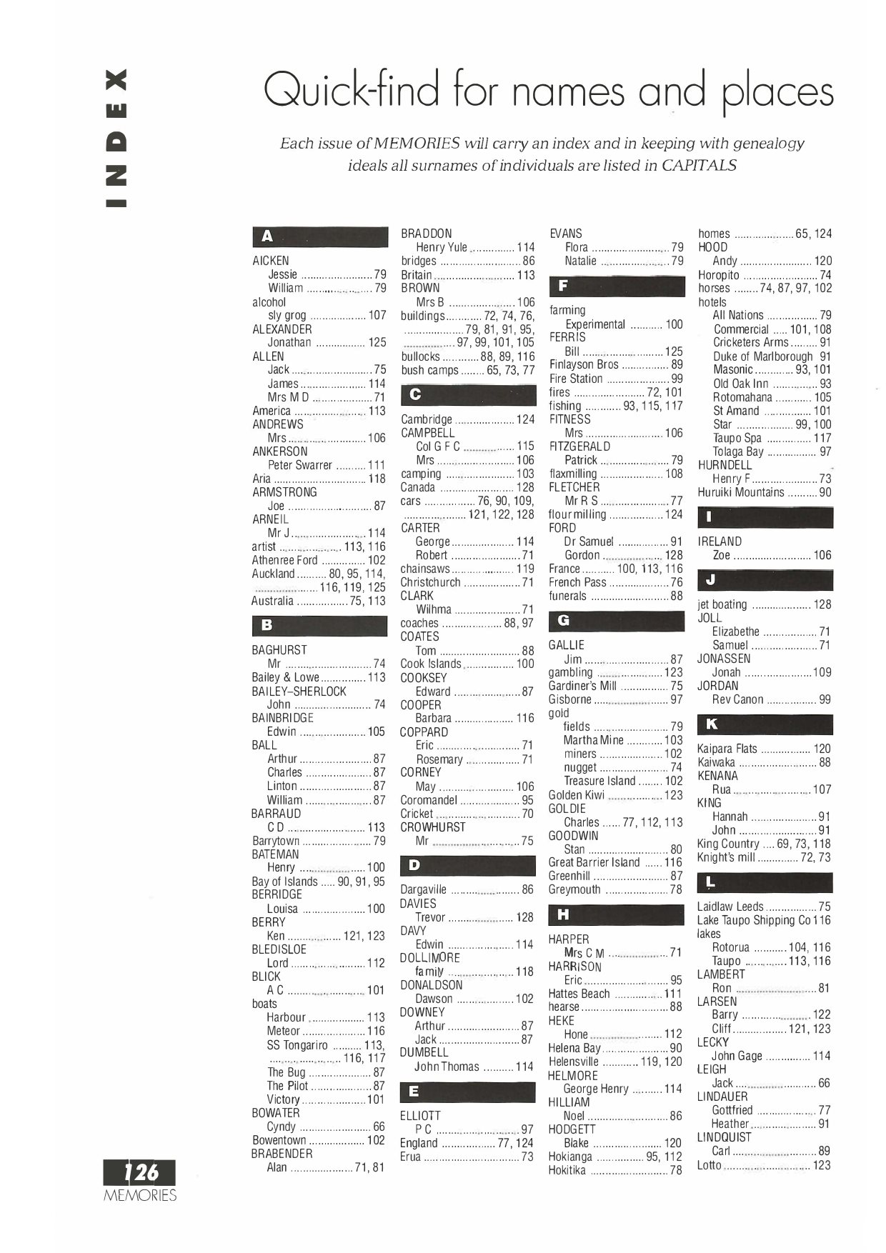 New Zealand Memories Issue 2 - Index