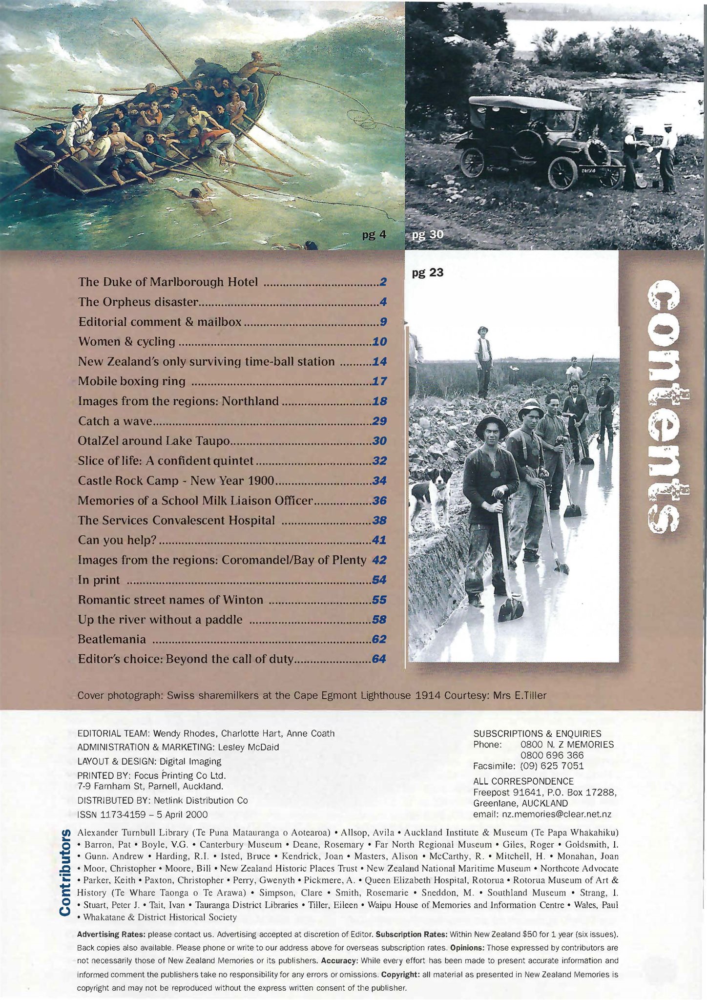Cover photograph: Swiss sharemilkers at the Cape Egmont Lighthouse 1914 Courtesy: Mrs E.Tiller