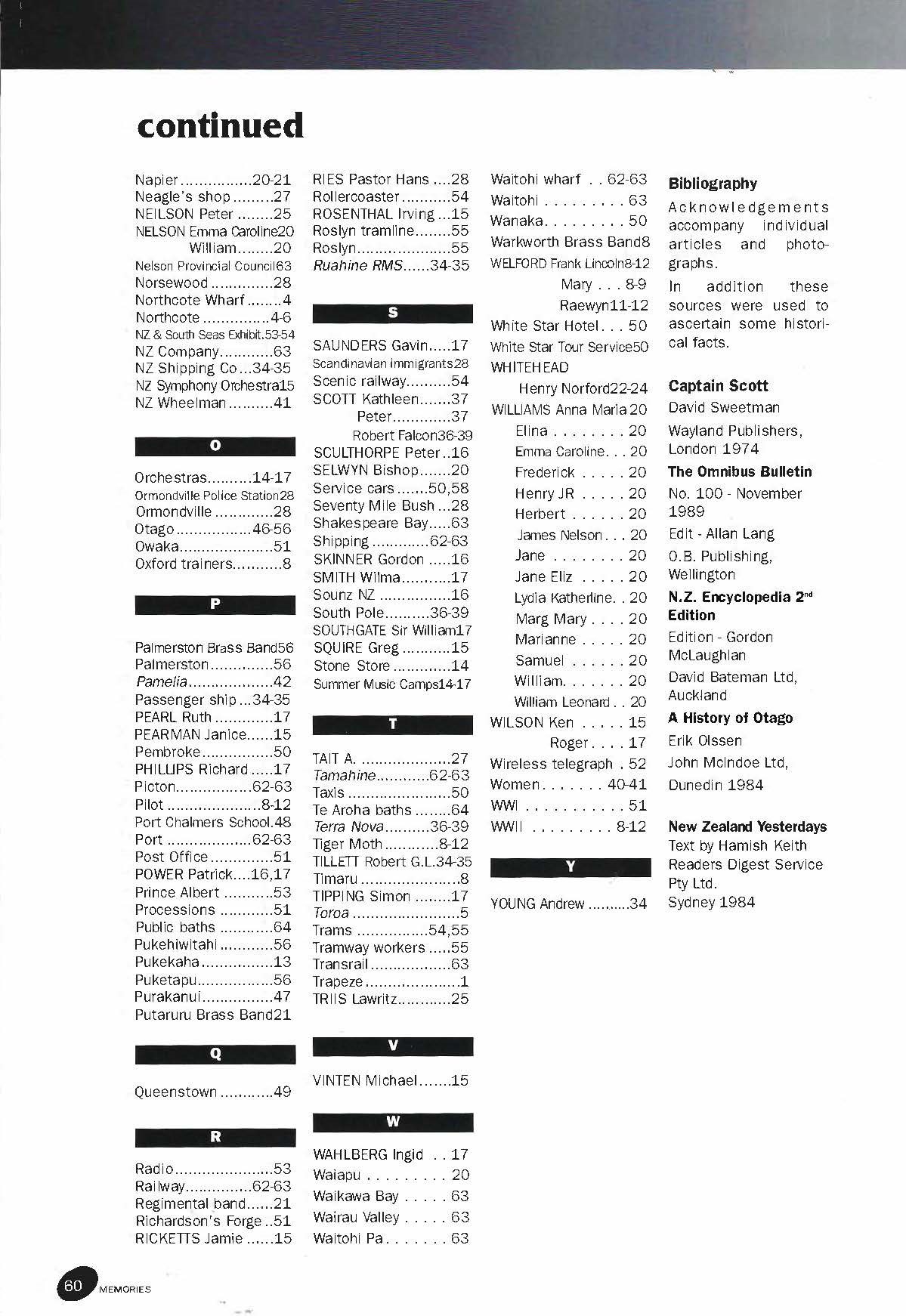 New Zealand Memories Issue 25 - Index