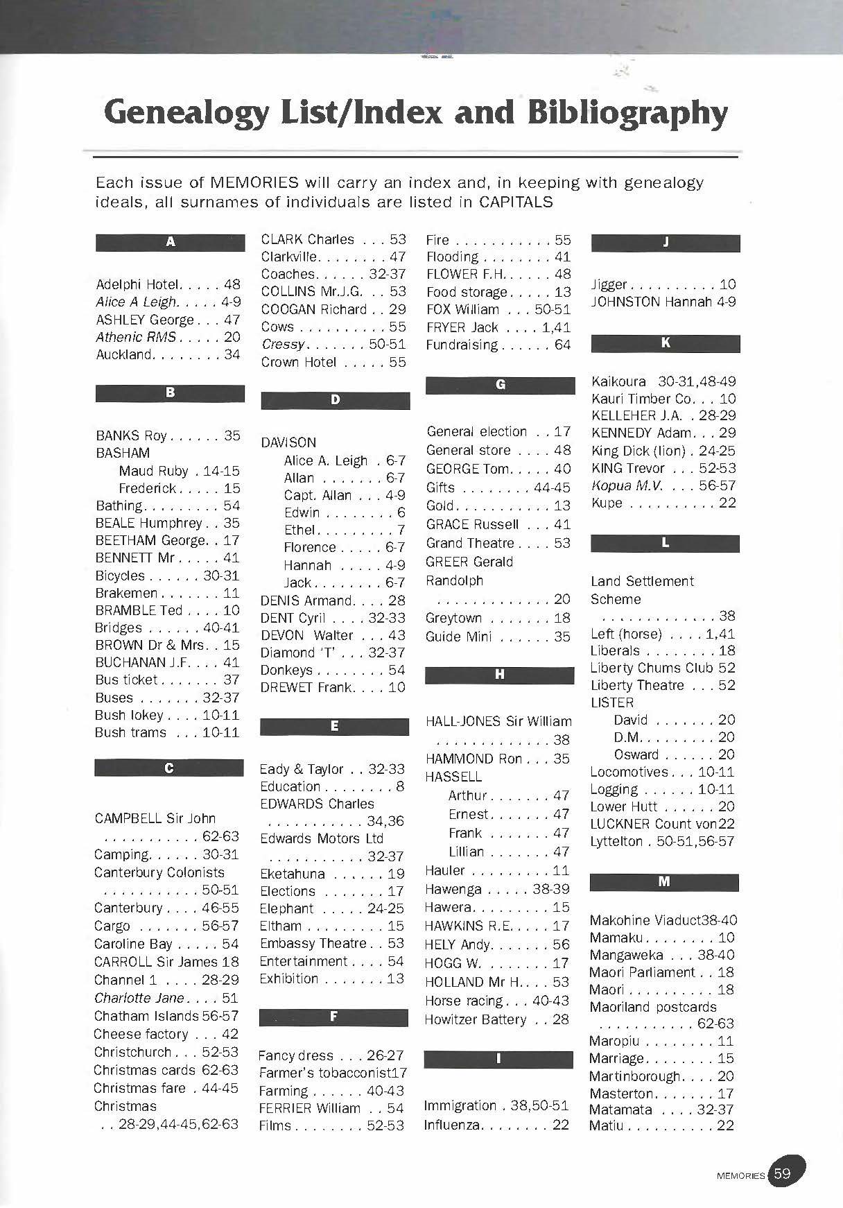 New Zealand Memories Issue 27 - Index