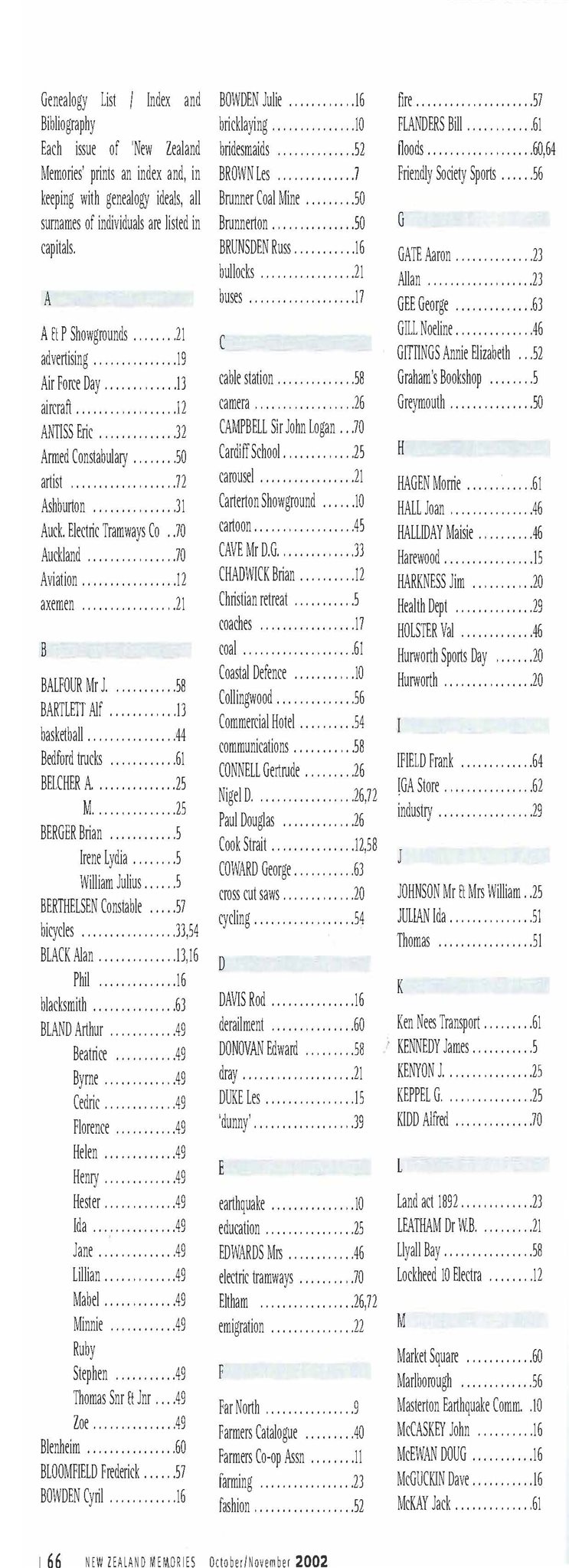 New Zealand Memories Issue 38 - Index