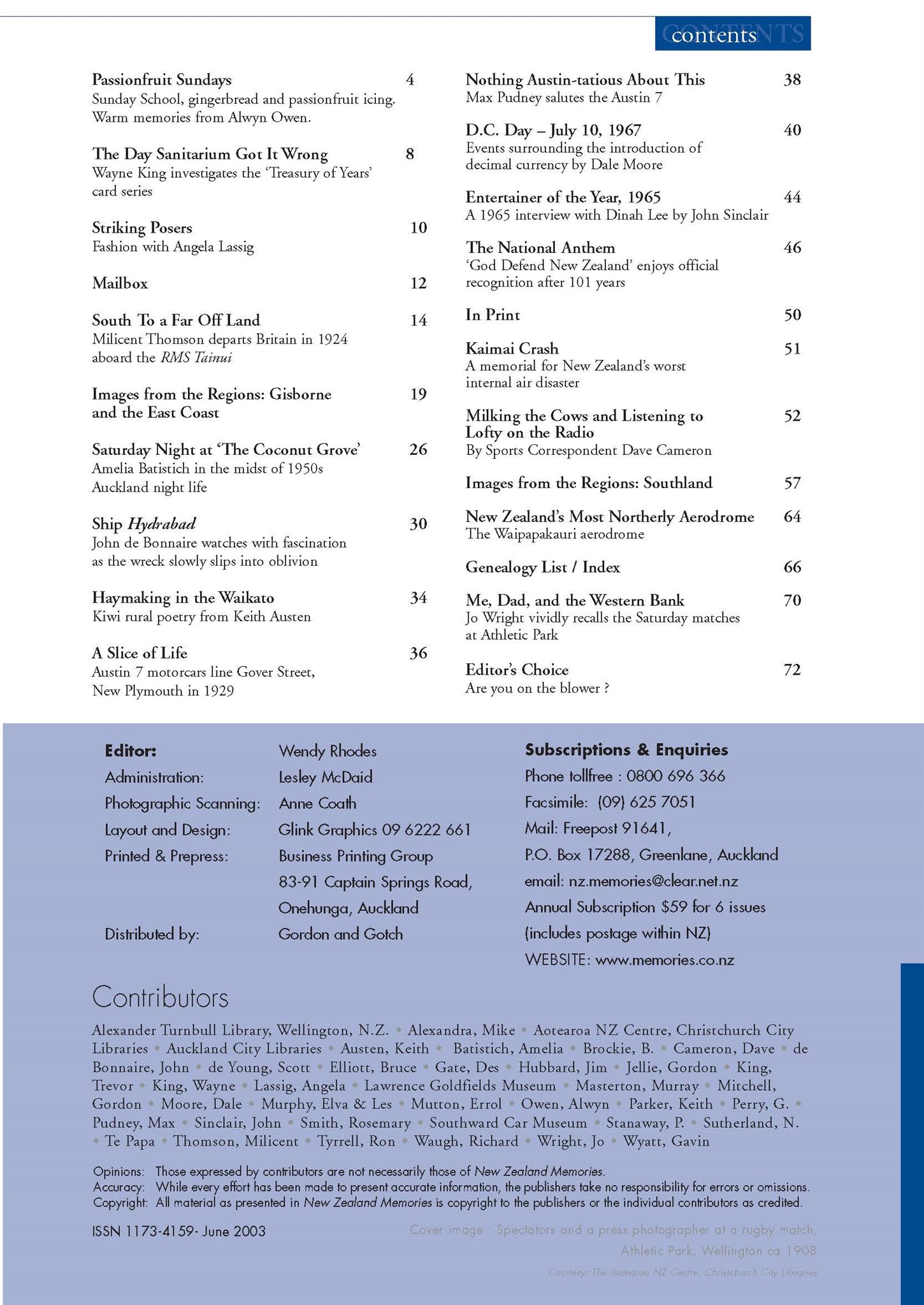 New Zealand Memories Issue 42 - Contents
