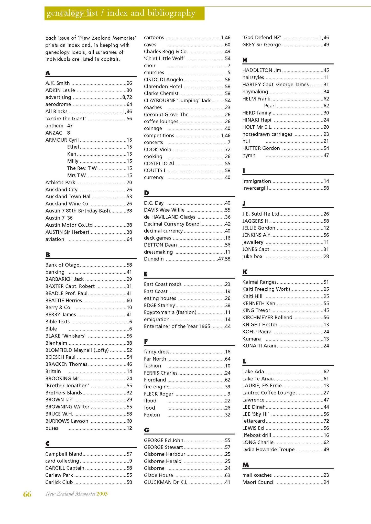 New Zealand Memories Issue 42 - Index
