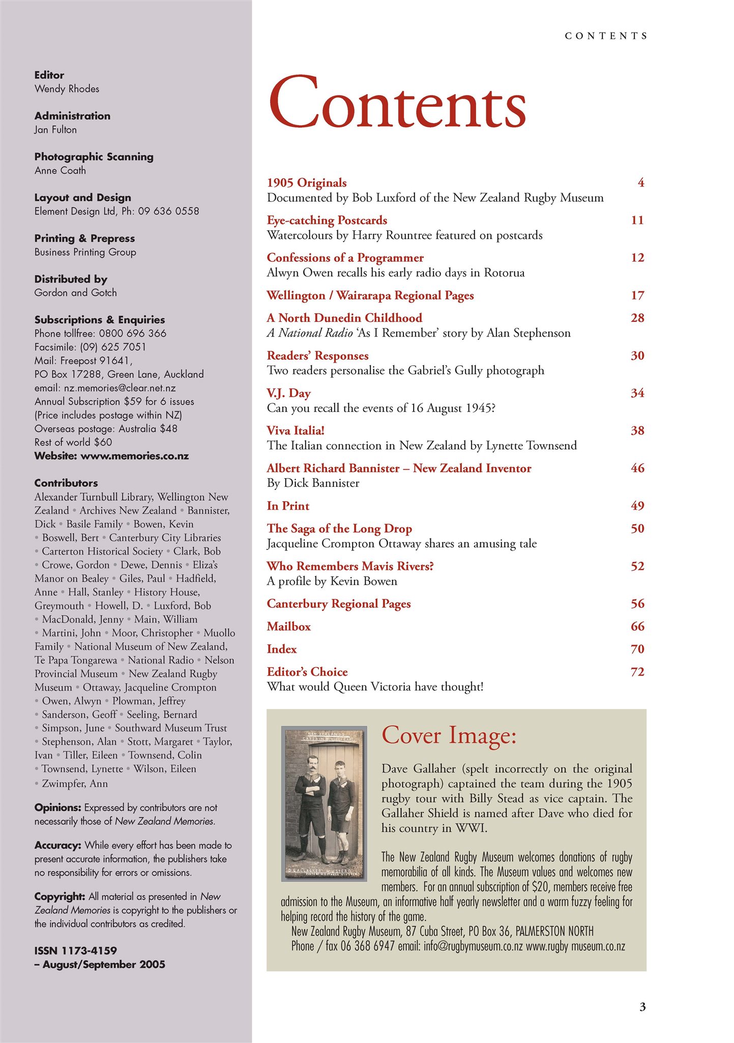 New Zealand Memories Issue 55 - Contents