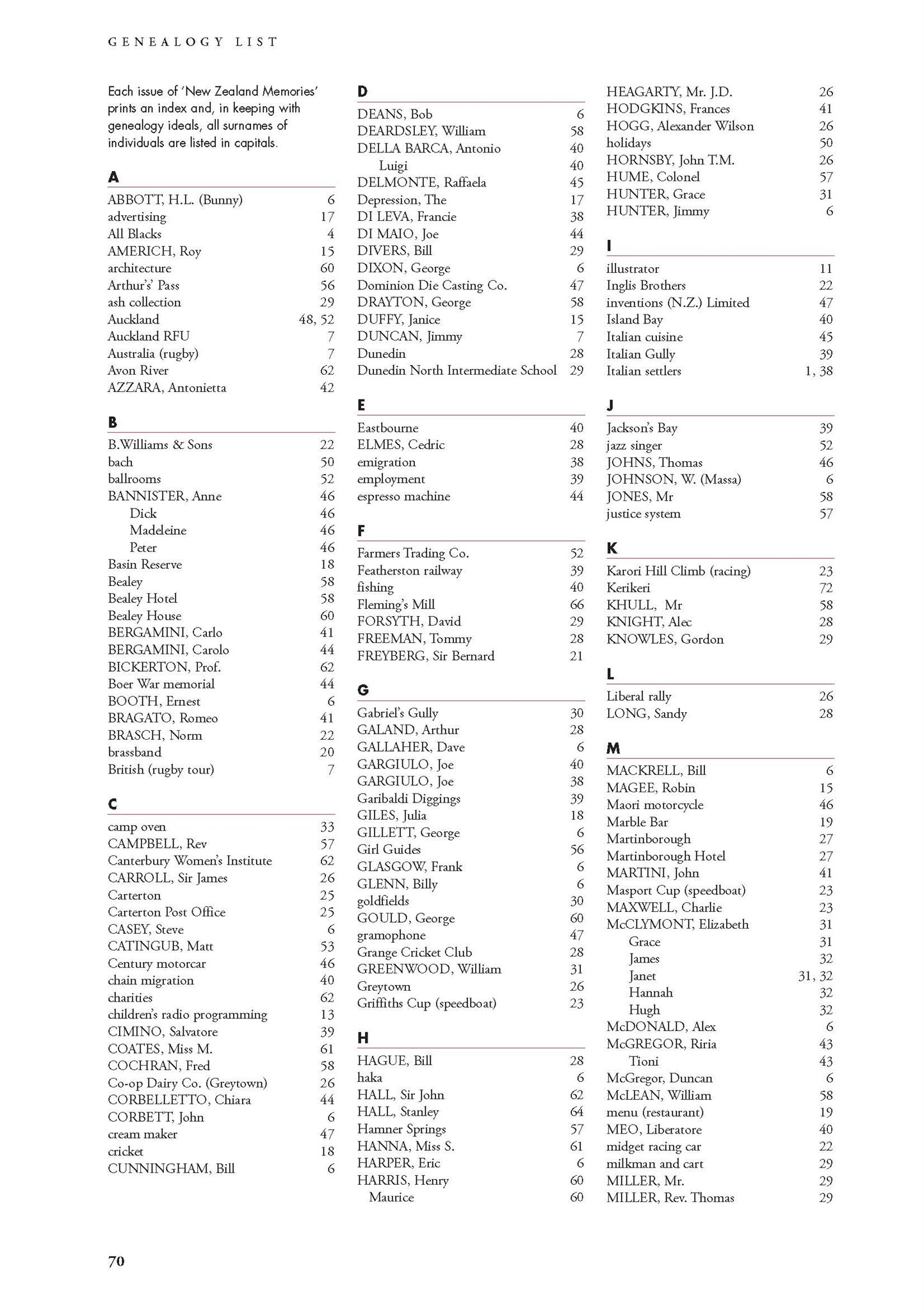 New Zealand Memories Issue 55 - Index