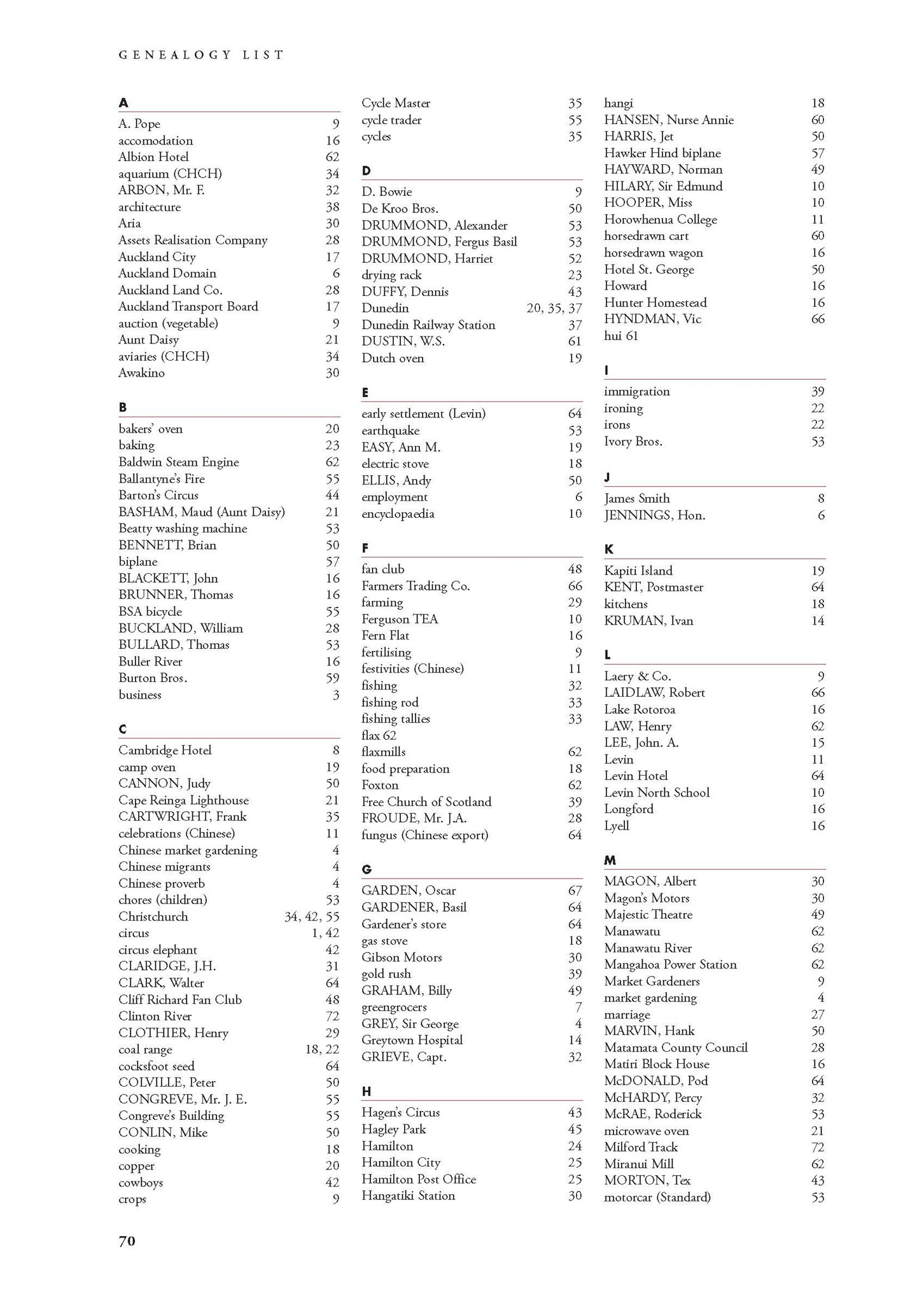 Index and Genealogy List 70