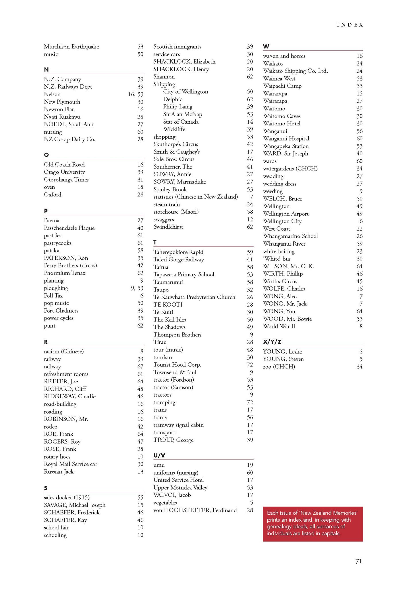 New Zealand Memories Issue 64 - Index