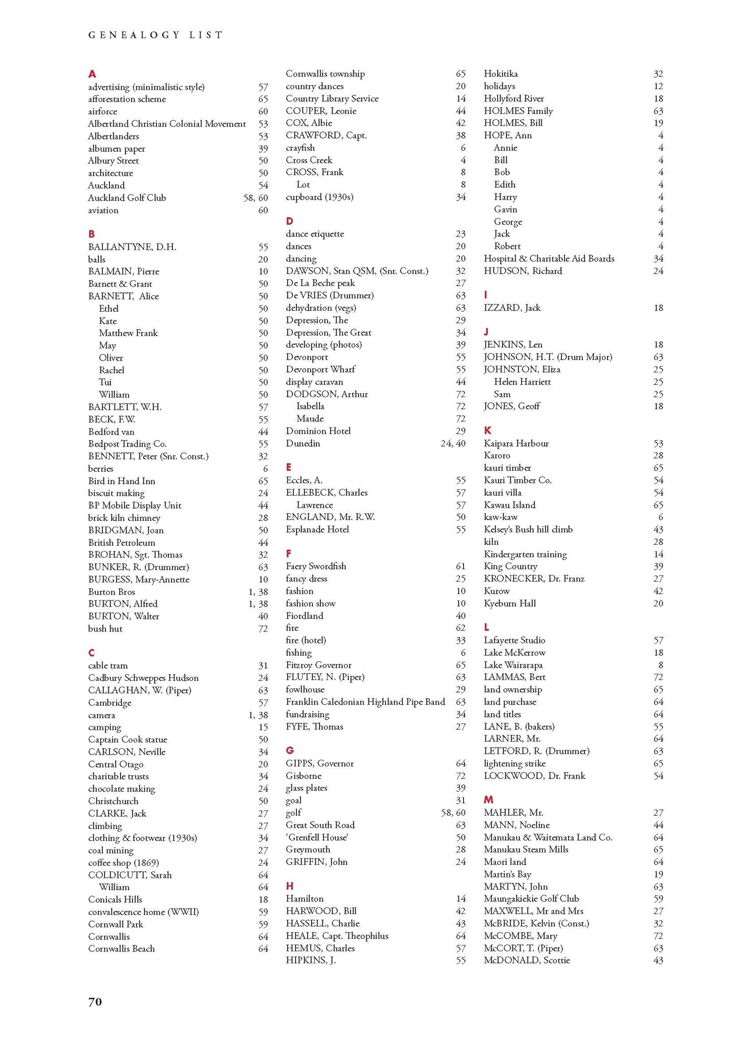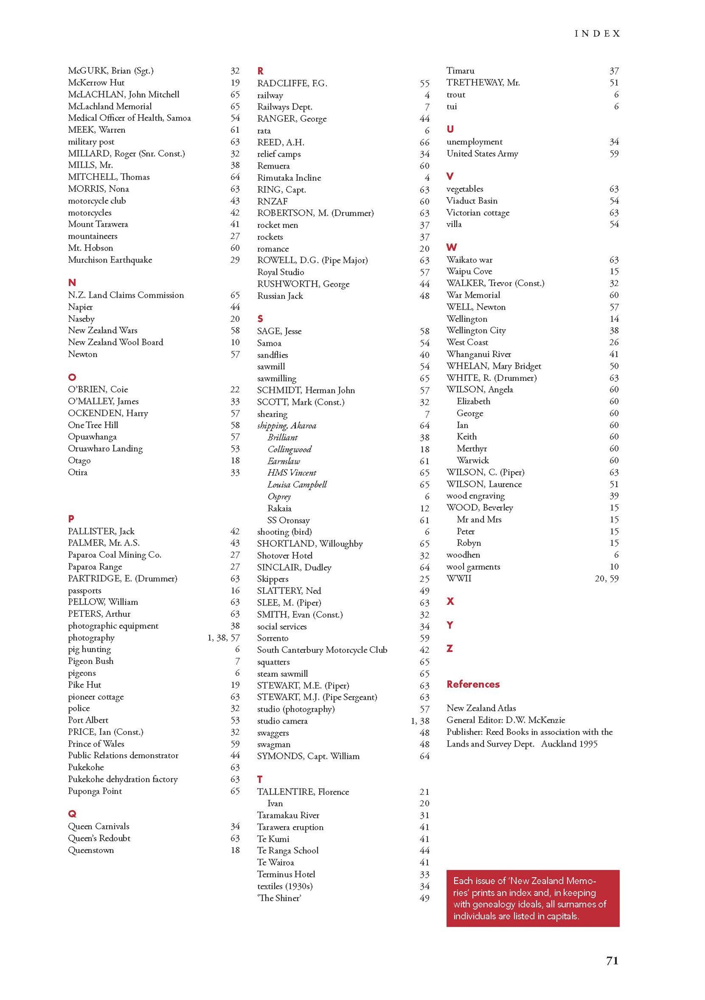 New Zealand Memories Issue 68 - Index