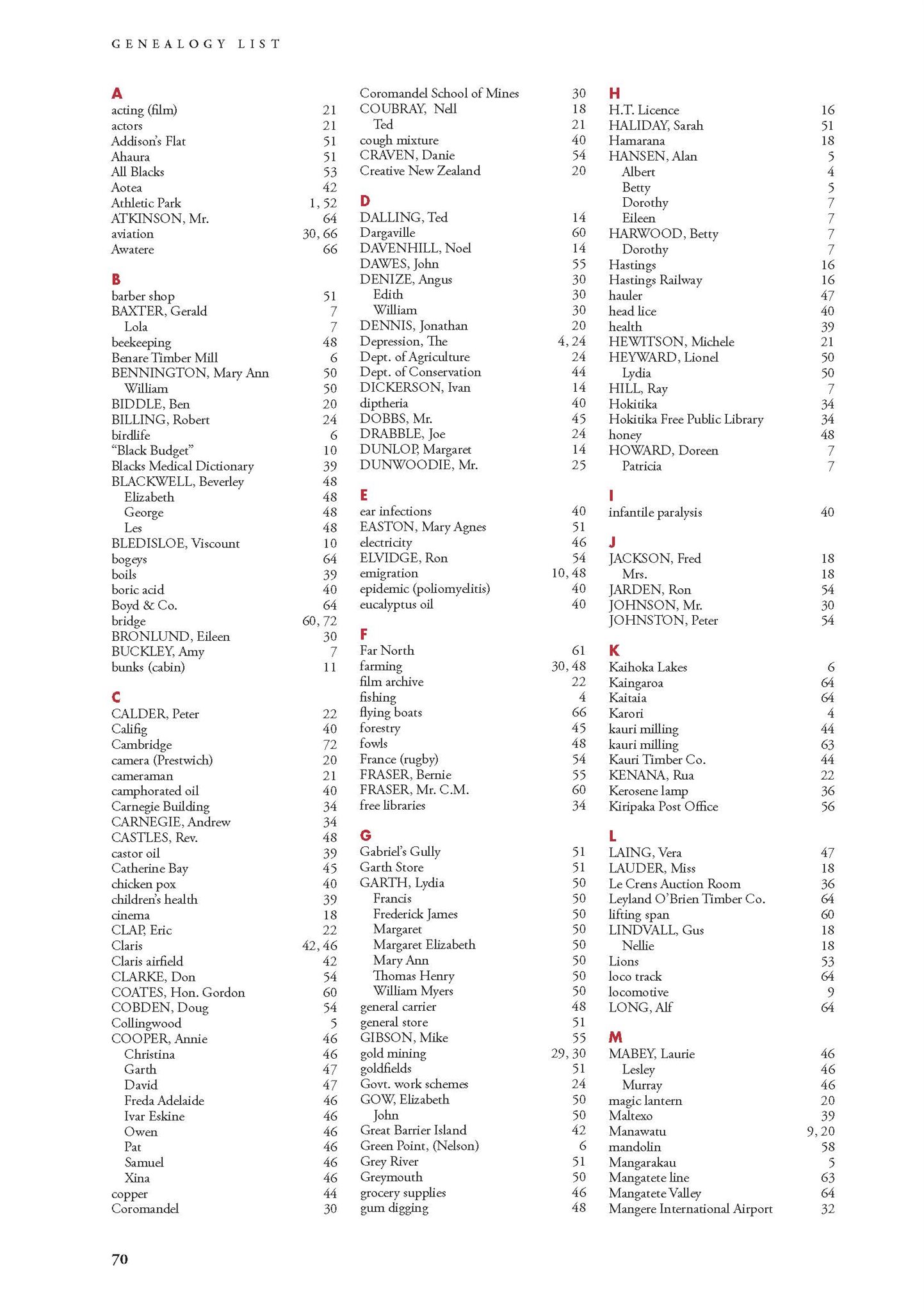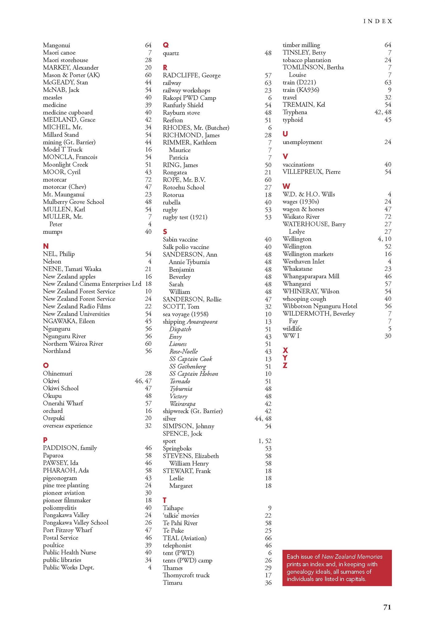 New Zealand Memories Issue 72 - Index