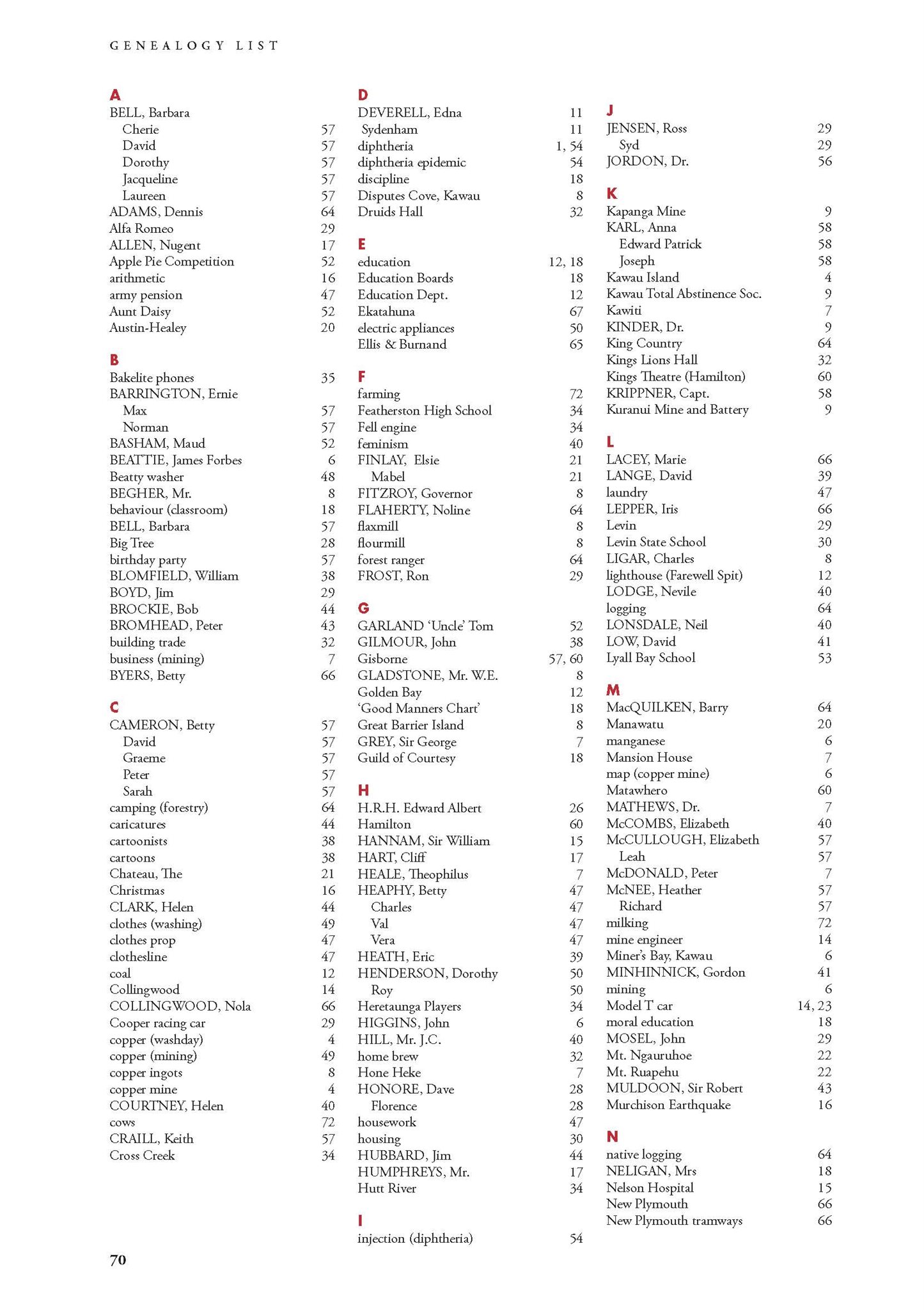 Index and Genealogy list 70