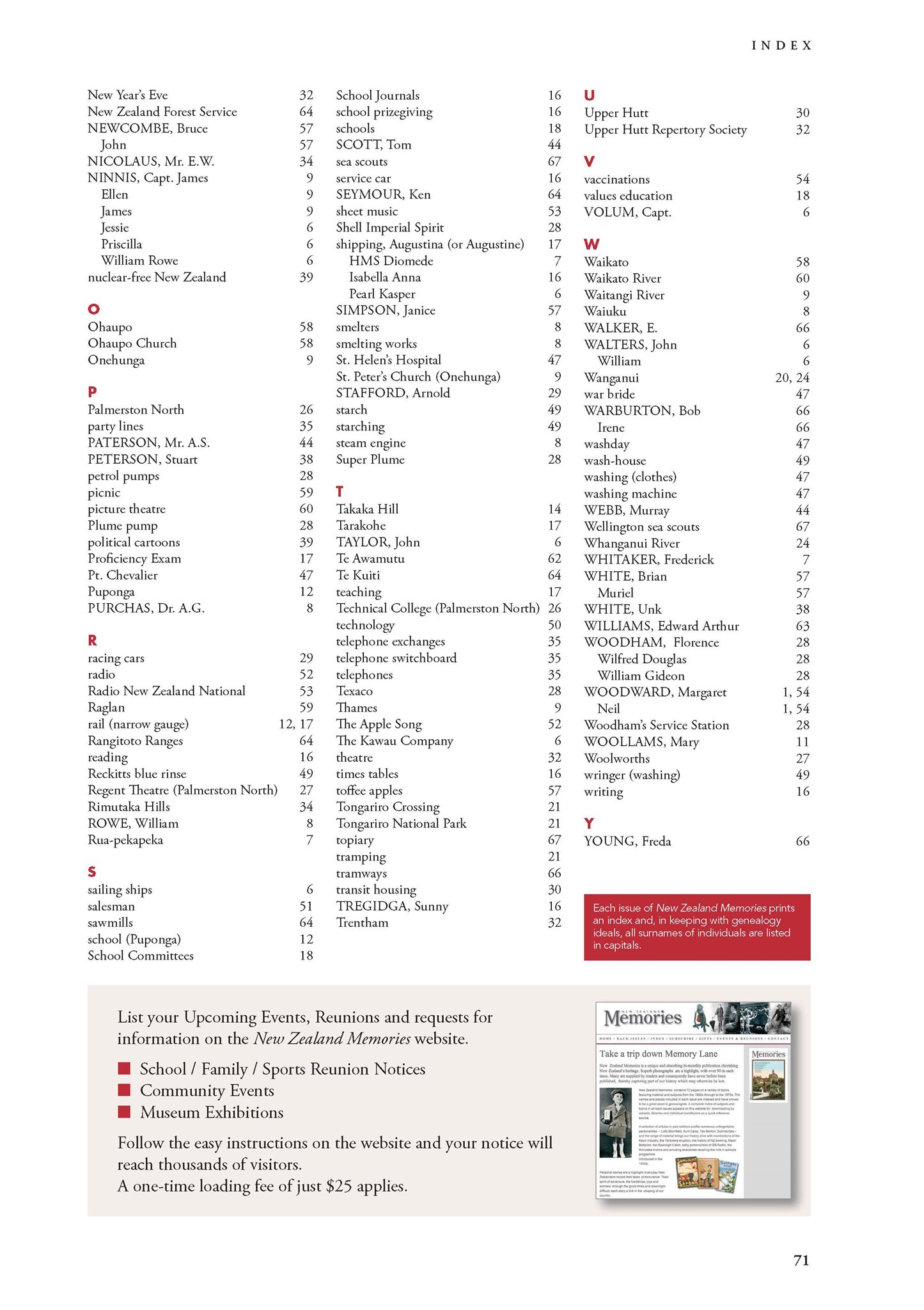 New Zealand Memories Issue 78 - Index