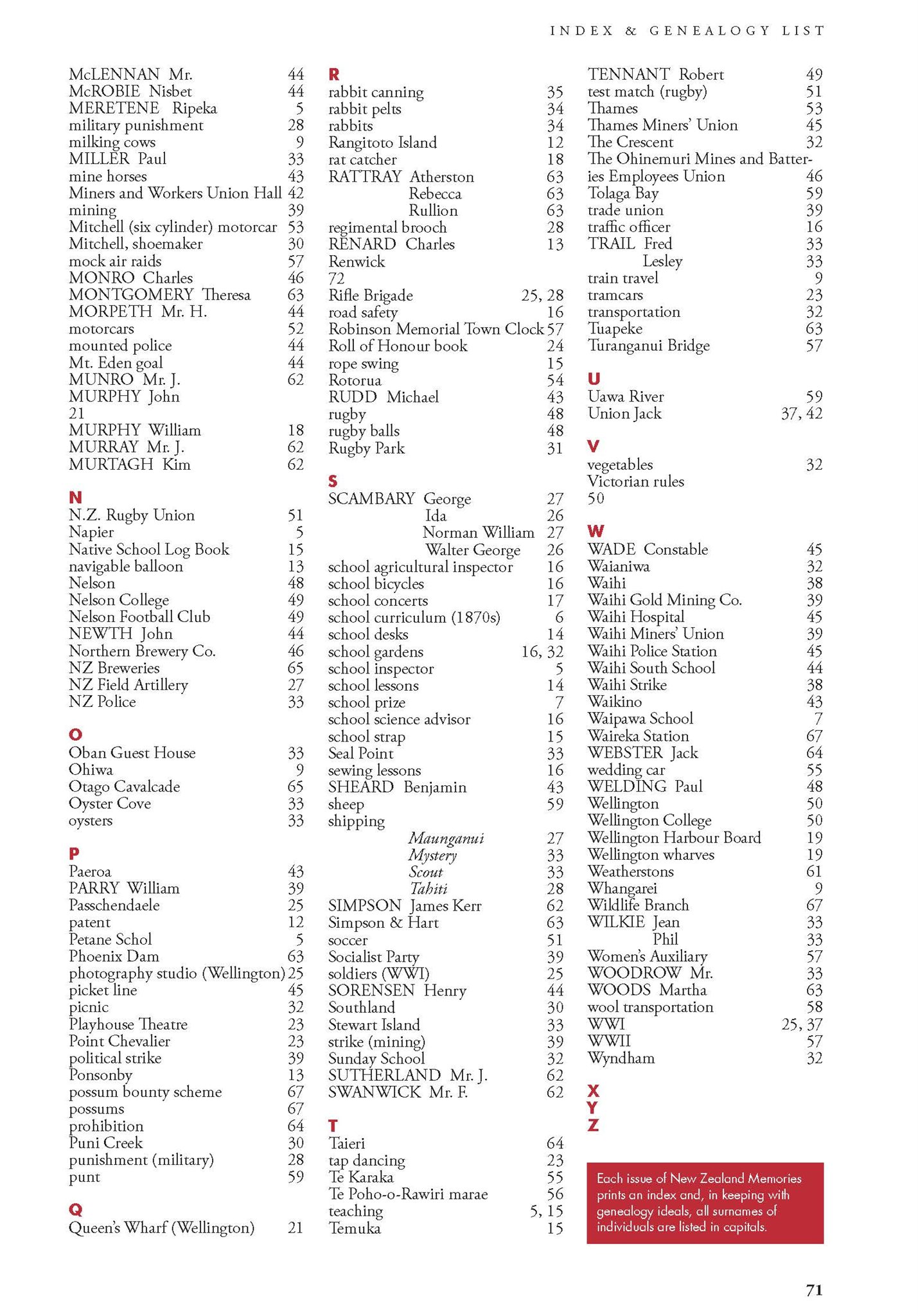 New Zealand Memories Issue 98 - Index